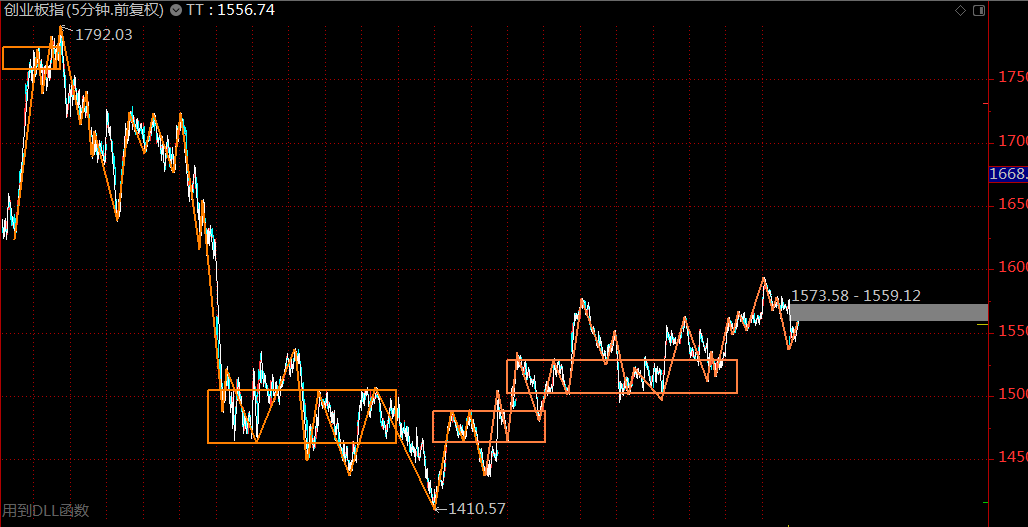 創(chuàng)業(yè)板這里仍然走的較為強(qiáng)勢(shì),需要關(guān)注1530點(diǎn)的支撐,只要不跌回下方的三十分鐘中樞,都可視作是在構(gòu)建第三類買點(diǎn)。結(jié)合滬指的情況來(lái)說(shuō),這里盤整背馳的概率更大,預(yù)期在下周初反彈后,創(chuàng)業(yè)板指數(shù)將會(huì)跌回三十分鐘中樞區(qū)間。