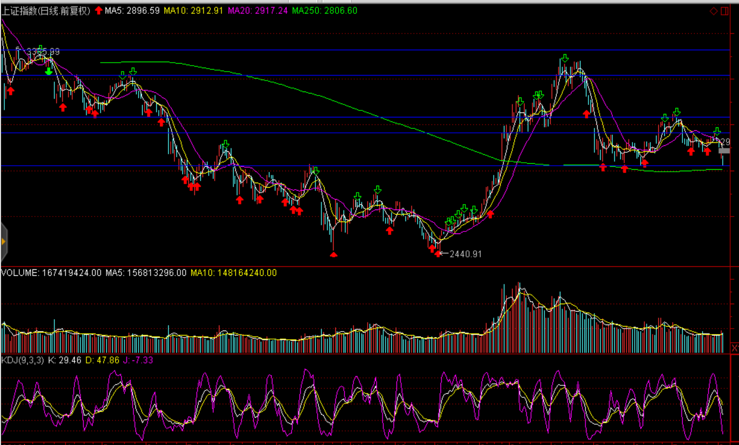 技術(shù)面:短期延續(xù)弱勢調(diào)整,滬綜指跌破6月初低點(2822點),年線2800點一線成為短期爭奪焦點。