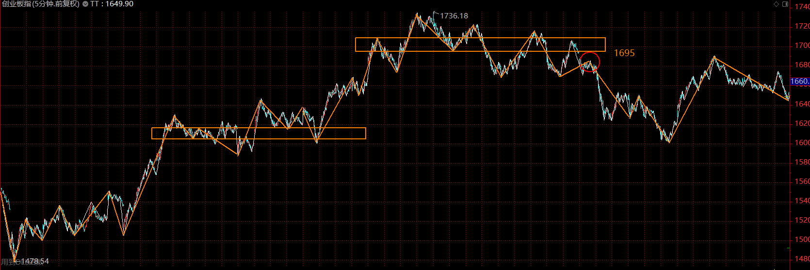 創(chuàng)業(yè)板依舊被上方五分鐘中樞下軌1695點(diǎn)壓制,回踩段連線段都沒有構(gòu)成,比較弱勢。本周初的反抽如果不能站上1695點(diǎn),大概率還要繼續(xù)回落,完成結(jié)構(gòu)。