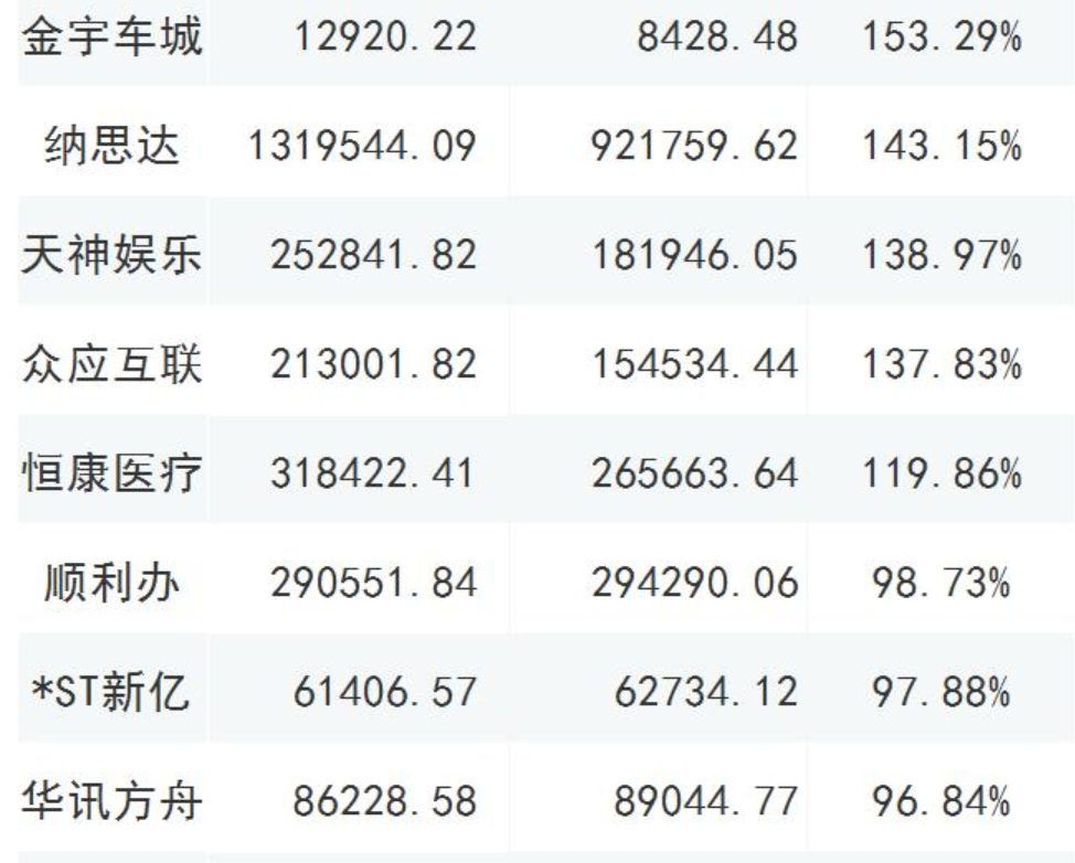 截至2019年三季報(bào)商譽(yù)占凈資產(chǎn)比重大于70%的公司,共有46家;12家的比值超過了百分百,以下列舉部分超過80%的公司;謹(jǐn)慎年終商譽(yù)減值風(fēng)險(xiǎn)爆發(fā);