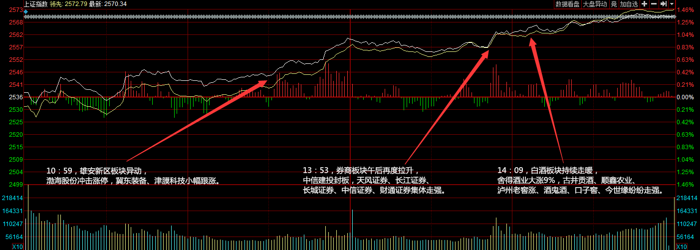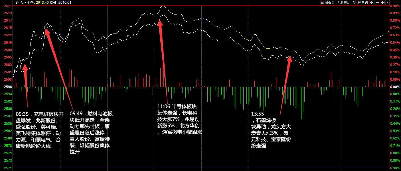 兩市今日平開(kāi),隨后氫燃料電池、券商板塊攻勢(shì)再起推動(dòng)指數(shù)沖高,早盤(pán)兩市震蕩走強(qiáng)。午后指數(shù)持續(xù)拉升,大消費(fèi)板塊崛起,白酒板塊受資金追捧領(lǐng)漲市場(chǎng),市場(chǎng)人氣比較活躍。