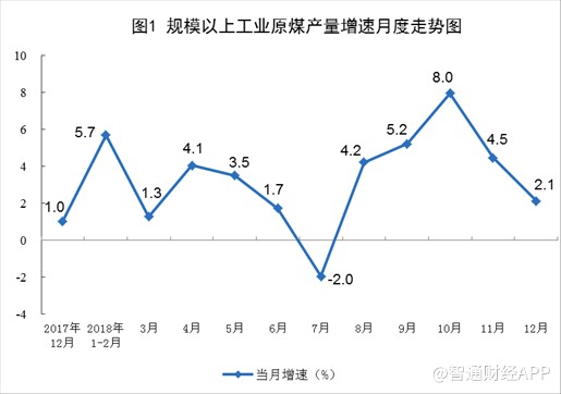 國家統(tǒng)計(jì)局今日(1月21日)公布了2018年12月份能源生產(chǎn)情況,數(shù)據(jù)顯示,12月份原煤產(chǎn)量3.2億噸,同比增長(zhǎng)2.1%,增速比上月回落2.4個(gè)百分點(diǎn),創(chuàng)下逾三年來最高,因冬季需求旺盛推動(dòng)主要礦商增加生產(chǎn),且一些新礦也開始上馬。