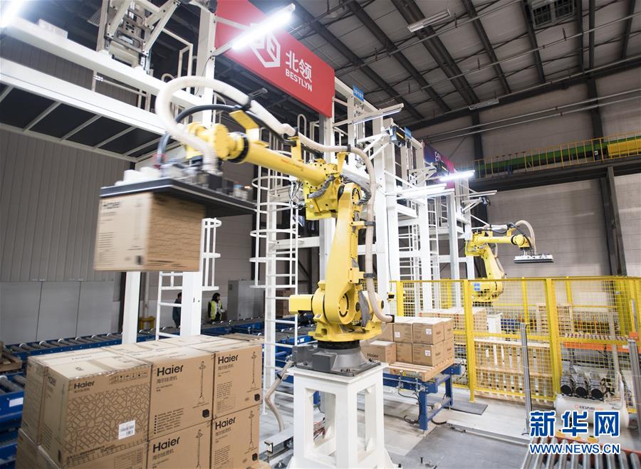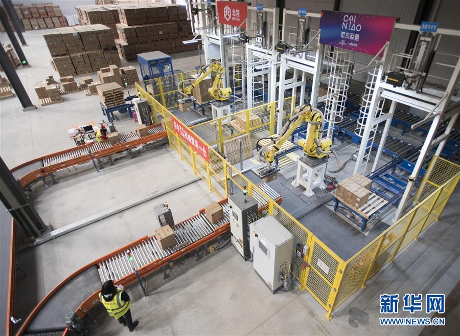 ??? 近日,在菜鳥網(wǎng)絡(luò)武漢黃陂物流倉內(nèi),一組機械臂在進行搬運作業(yè)。近日,菜鳥網(wǎng)絡(luò)在湖北武漢黃陂物流倉庫啟用智能機械臂來搬運商品。據(jù)介紹,每組機械臂一個小時能搬運1000件商品,可以24小時不間斷作業(yè)。這些機械臂的投入,有助于緩解高峰期貨物處理壓力,提高發(fā)貨速度,被工程師親切地稱為“麒麟臂”。新華社記者肖藝九攝