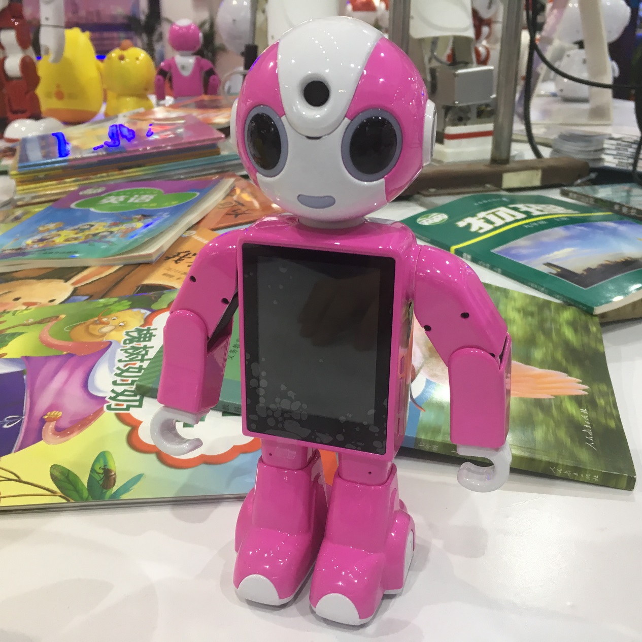 人形智能機(jī)器人小E。唱得了歌,跳得了舞,聊得了天,打得了拳,可以聲控控制家電,安防監(jiān)護(hù)家庭,視頻通話聊天,百科知識學(xué)習(xí),APP控制、3D可視化動作編程等功能。