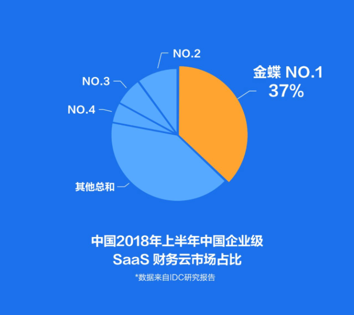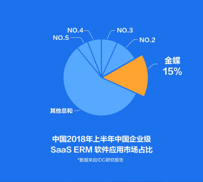 IDC 《中國半年度企業(yè)級 S aaS ERM 應(yīng)用軟件市場跟蹤報告》,金蝶在2018上半年 SaaS ERM 和 SaaS 財務(wù) 云 市場 占比繼續(xù)蟬聯(lián)第一。