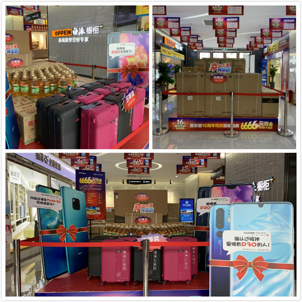 據(jù)了解,這場從6月14日持續(xù)至30日的司慶活動,國安居為業(yè)主朋友們準(zhǔn)備了六大鉅惠:1、司慶重磅獻豪禮,七店就送200臺華為手機!6.30當(dāng)天累計訂單(可多個品牌下定)實付滿15000元送遠東旅行箱一個,實付滿80000元送華為P20一臺,實付滿150000元送華為mate20一臺,實付滿250000元送華為P30手機一臺;2、6月30日前,提前在國安居店面及微信16元搶購《司慶超抵卡》,活動當(dāng)天簽到即可尊享6重超值豪禮;3、6月14日-6月29日活動期間,顧客買單后微信分享活動,即可領(lǐng)取16-666元隨機金額現(xiàn)金紅包一個,5000個現(xiàn)金紅包等您來瓜分!還有機會贏取終極大獎華為P30哦;4、國安居16周年司慶公益義賣,驚現(xiàn)160元馬桶、160元爐灶、16元花灑、16元鞋柜……買到就是賺到!沒錯,就是這么任性;5、160萬現(xiàn)金聯(lián)單就返,6月30日活動當(dāng)天,在國安居下定3個品牌以上(每個品牌實付滿3000元),即可參與聯(lián)單返現(xiàn)活動,多買多返,上不封頂;6、終極抽6666元現(xiàn)金大獎,6.15-6.30活動期間,購物實付金額滿2000元可領(lǐng)取抽獎券一張,滿4000元領(lǐng)取兩張,以此類推。
