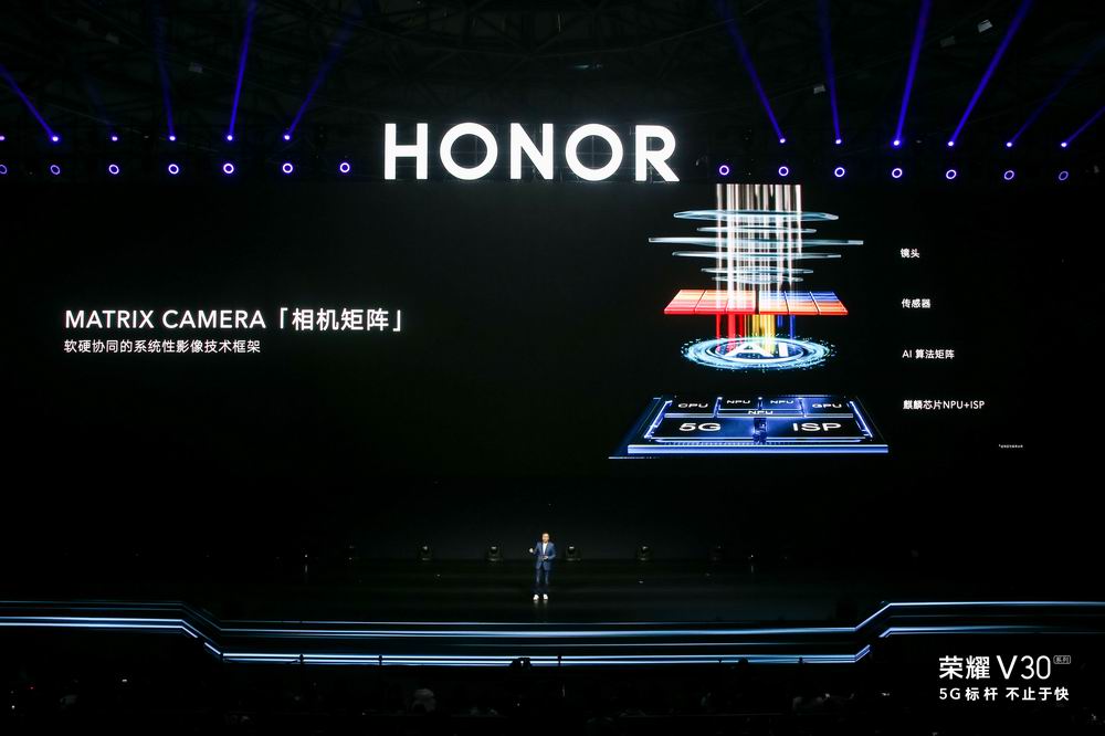 大幅提升的影像能力是榮耀V30在5G之外的另一大看點。此前在網(wǎng)絡(luò)上已經(jīng)有傳言的Matrix Camera突破性相機矩陣得到了趙明的證實,這是一種軟硬協(xié)同的技術(shù)框架,通過分布式的RAW域AI算法矩陣,借助自研達(dá)芬奇架構(gòu)NPU和麒麟ISP強大處理能力,與聯(lián)合設(shè)計的光學(xué)系統(tǒng)深度融合,帶來綜合影像能力質(zhì)的提升。其中包括全方位的影像能力提升,例如可以媲美億級像素的超清模式;極暗光下的高感光能力與低噪點控制,ISO超感光能力高達(dá)409600;電影級五軸視頻智慧防抖;突破性的視頻HDR能力;以及此前已經(jīng)被曝光過的卓越暗光攝像能力。
