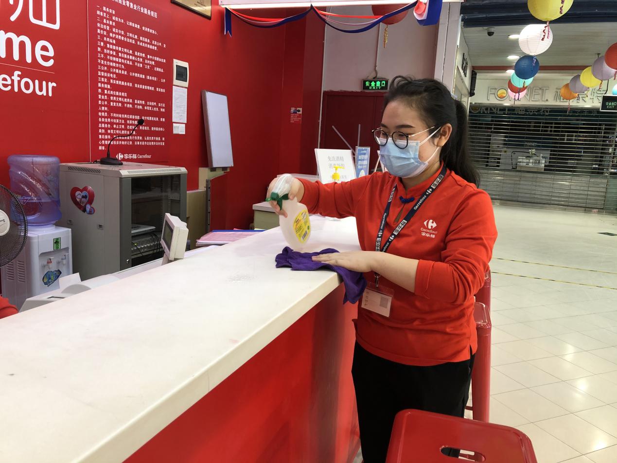陳翠姣這次被分配到了超市收銀部門,由于是標(biāo)準(zhǔn)化操作,加上使用移動(dòng)支付的顧客較多,技術(shù)難度不大,在資深員工的耐心指導(dǎo)下,她上手很快。陳翠姣表示對新崗位很滿意,她說,賦閑在家太久了,這次能換崗上任,很開心,“尤其是能夠加入到保障城市民生供應(yīng)的大型商超,非常有意義?!毕挛?點(diǎn),陳翠姣為服務(wù)中心柜臺做第三次消毒清潔后,便可以結(jié)束今日的早班工作,打卡下班了。