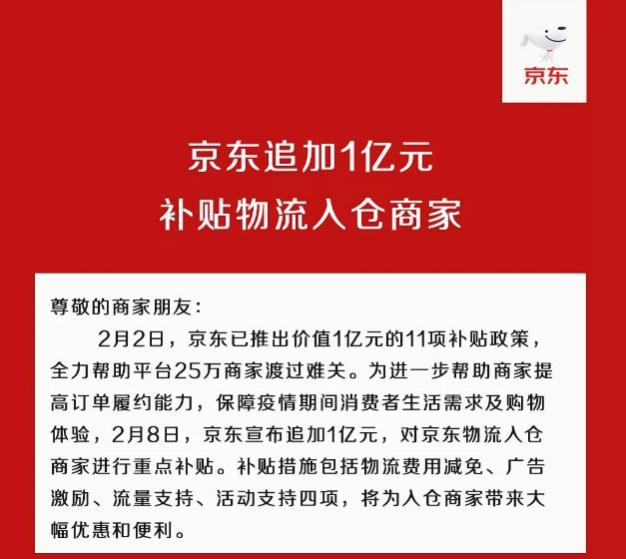 “為此,我們也向京東25萬商家推出了11項補貼扶持政策,涵蓋費用減免、金融和物流支持、健康保障等等,希望與商家共度難關,此項政策預計投入將超過1億元,尤其對湖北地區(qū)商家進行了重點支持,京東零售還將在確保商品供應、穩(wěn)定商品價格、扶持中小企業(yè)等方面繼續(xù)出臺系列保障政策并持續(xù)進行大力度投入?!毙炖渍f。