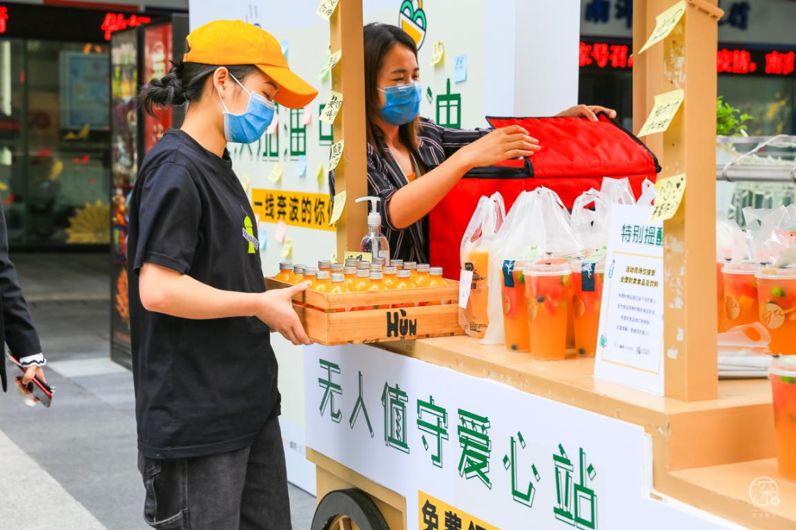 3月3日至3月8日卓悅INTOWN在街頭專設了一個”無人值守愛心站”,用愛心餐車上放滿了食物冷/熱飲,專門免費贈送給快遞、外賣小哥、環(huán)衛(wèi)工人、警察、城管等一線奔波的人員。