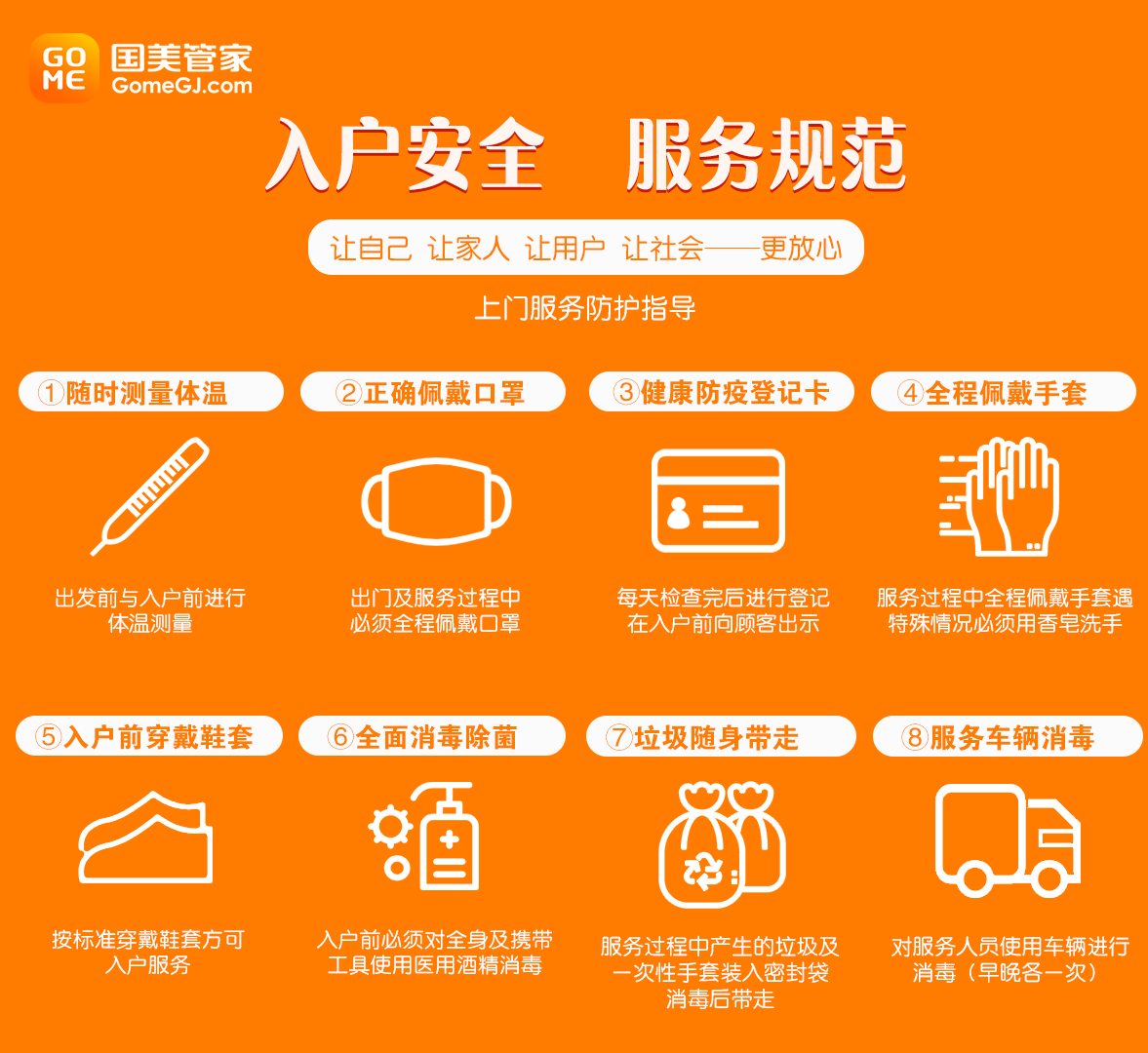 第二天上午,國(guó)美管家的售后服務(wù)工程師唐勝(化名)在小區(qū)測(cè)溫登記后按響了李女士家的門鈴,向李女士出示了“健康防疫登記卡”,拿出體溫槍對(duì)準(zhǔn)手腕、額頭分別測(cè)溫,均顯示正常。在門外唐勝還更換了新的口罩、佩戴防護(hù)手套、穿戴好鞋套,在自身全面消毒后才進(jìn)入李女士家中。