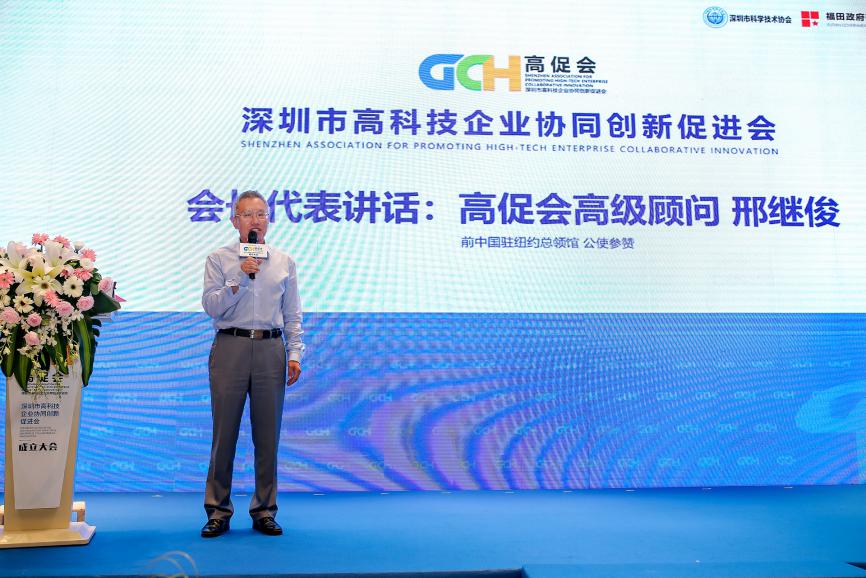 高促會高級顧問邢繼俊代表靳會長對支持高促會成立的各界人士表示衷心的感謝,并提出深圳市高科技企業(yè)協(xié)同創(chuàng)新促進會作為連接政府、科研院所和企業(yè)間的紐帶和橋梁,將部署以科技創(chuàng)新為核心的全面創(chuàng)新工作,充分釋放創(chuàng)新創(chuàng)業(yè)創(chuàng)造動能,把高新技術(shù)產(chǎn)業(yè)的旗幟舉得更高,集聚人才、集聚智慧,為深圳建設(shè)成為綜合性開放型科技創(chuàng)新中心,當(dāng)好排頭兵、先行者,走科技創(chuàng)新之路,共筑美好明天。