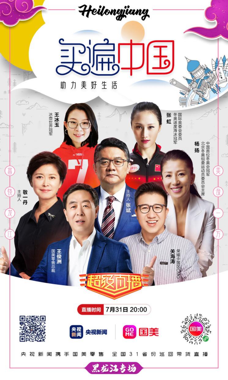 7月31日,“買(mǎi)遍中國(guó)·助力美好生活——央視新聞&國(guó)美零售全國(guó)31省份巡回帶貨直播”第二站聚焦黑龍江,回眸東北這片熱土。本次直播延續(xù)了國(guó)美一貫的開(kāi)放與親民風(fēng)格。央視體育主播張斌將與三位世界冠軍——中國(guó)首位冬奧會(huì)冠軍楊揚(yáng)、冬奧速滑冠軍張虹、冰壺世界冠軍王冰玉及央視主持人敬一丹同臺(tái)帶貨,除了推薦國(guó)美熱銷(xiāo)的數(shù)十款家電及消費(fèi)電子產(chǎn)品,更帶來(lái)了眾多黑龍江特色產(chǎn)品。