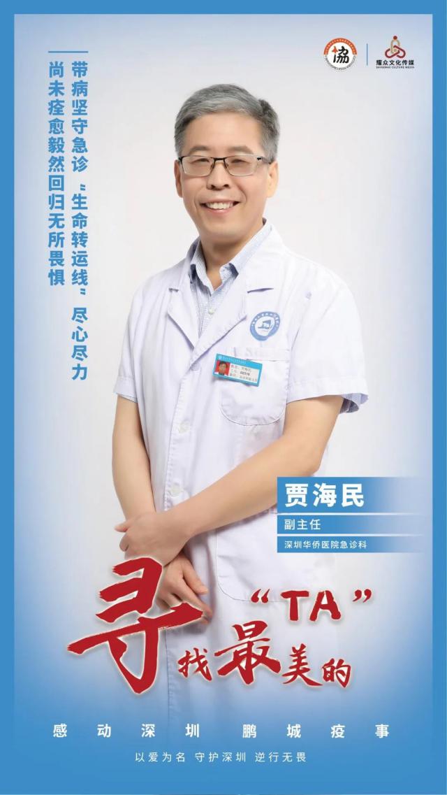 深圳華僑醫(yī)院是我市社會(huì)辦三級(jí)綜合醫(yī)院、市49個(gè)開設(shè)發(fā)熱門診的醫(yī)院之一,從受領(lǐng)任務(wù)起即積極行動(dòng),進(jìn)入臨戰(zhàn)狀態(tài)。作為開設(shè)發(fā)熱門診的醫(yī)院,需設(shè)置預(yù)檢分診并安排24小時(shí)值班,這里無疑是醫(yī)院最危險(xiǎn)的“主戰(zhàn)場(chǎng)”。賈海民作為急診科副主任及院前科主任,自新冠疫情爆發(fā)以來,始終堅(jiān)守在防疫工作第一線,負(fù)責(zé)組織發(fā)熱病人診治、疑似新冠肺炎120接診轉(zhuǎn)運(yùn)、疑似患者專家會(huì)診等高危工作。