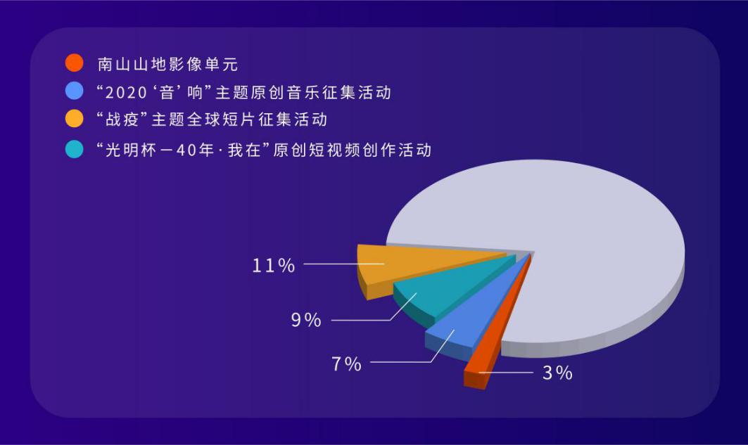 金鵬短片導(dǎo)演扶持計(jì)劃是短片節(jié)最重要的競賽活動之一,第十一屆短片節(jié)金鵬獎短片導(dǎo)演扶持計(jì)劃共設(shè)主競賽單元、“戰(zhàn)疫”主題全球短片征集活動、“光明杯-40年·我在”原創(chuàng)短視頻創(chuàng)作活動、“2020‘音’響”主題原創(chuàng)音樂征集活動以及大學(xué)生短片競賽單元共5個(gè)主題單元26個(gè)獎項(xiàng),各路導(dǎo)演角逐總金額達(dá)100多萬元扶持資金。