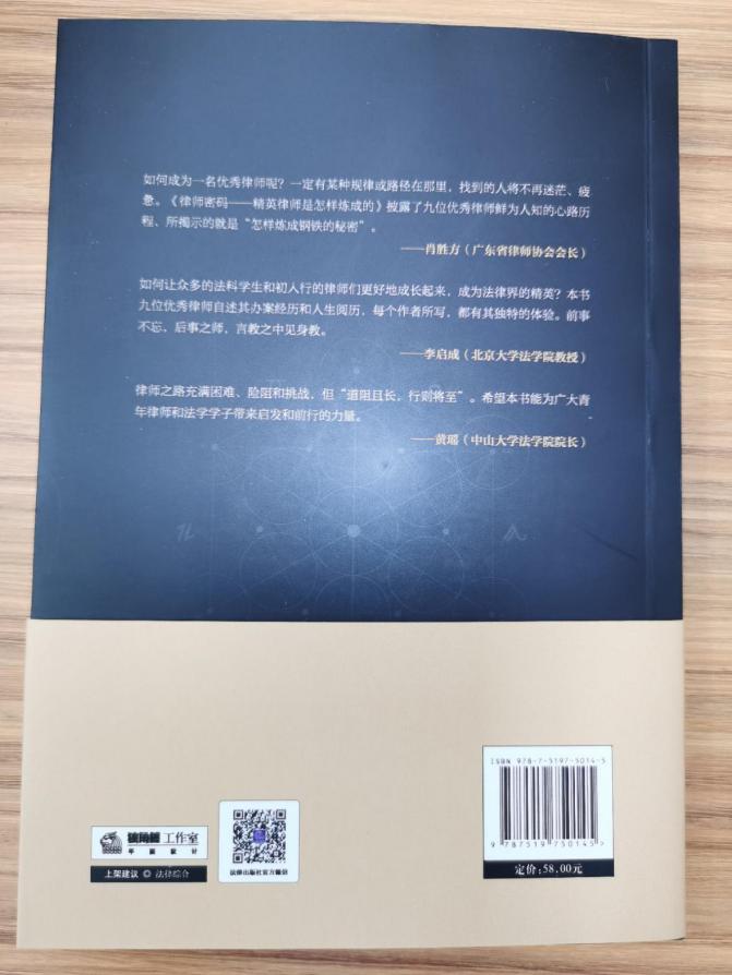 肖勝方會(huì)長(zhǎng)在“推薦語(yǔ)”中指出:“如何成為一名優(yōu)秀律師呢?一定有某種規(guī)律或路徑在那里,找到的人將不再迷茫、疲憊。《律師密碼——精英律師是怎樣練成的》披露了九位優(yōu)秀律師鮮為人知的心路歷程,所揭示的就是‘怎樣煉成鋼鐵的秘密’?!?(吳艷 )