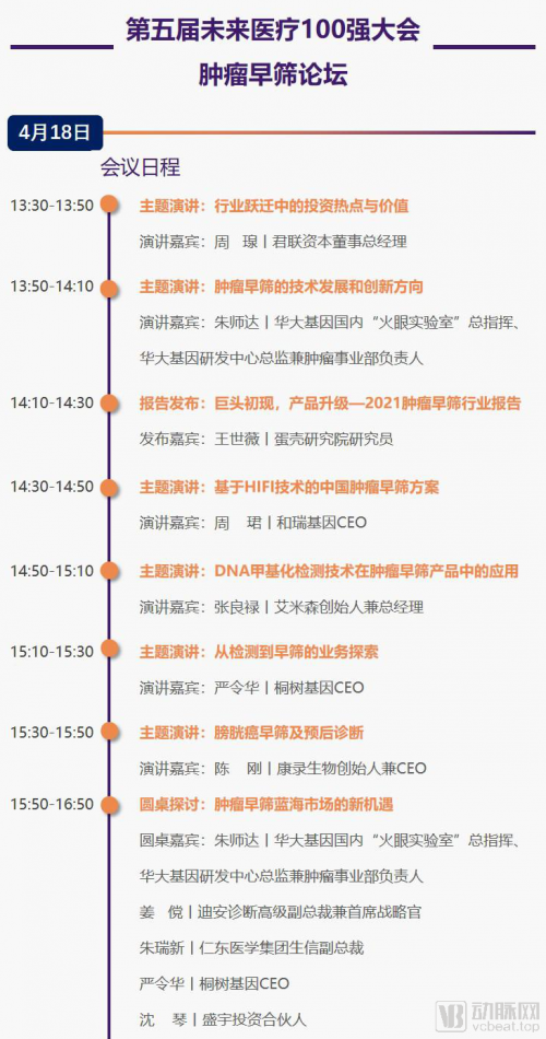 在此背景下,4月18日,第五屆未來醫(yī)療100強大會·腫瘤早篩論壇將探討如何用科研轉(zhuǎn)化的力量并有效地轉(zhuǎn)化產(chǎn)品、如何利用技術(shù)賦能精準診療、如何構(gòu)建互聯(lián)網(wǎng)診斷閉環(huán)等。屆時,華大基因朱師達博士將在腫瘤早篩論壇現(xiàn)場,帶來以《腫瘤早篩的技術(shù)發(fā)展和創(chuàng)新方向》為題的分享,與業(yè)內(nèi)專家共話腫瘤早篩行業(yè)新技術(shù)、新發(fā)展、新趨勢。
