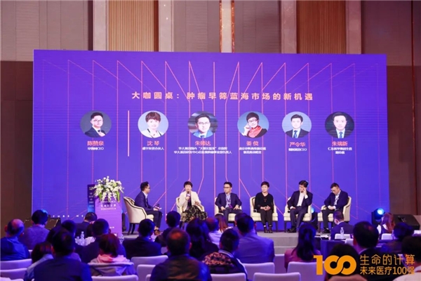 華大基因腫瘤事業(yè)部總經(jīng)理朱師達(dá)參與“腫瘤早篩藍(lán)海市場的新機(jī)遇”圓桌討論(左三)