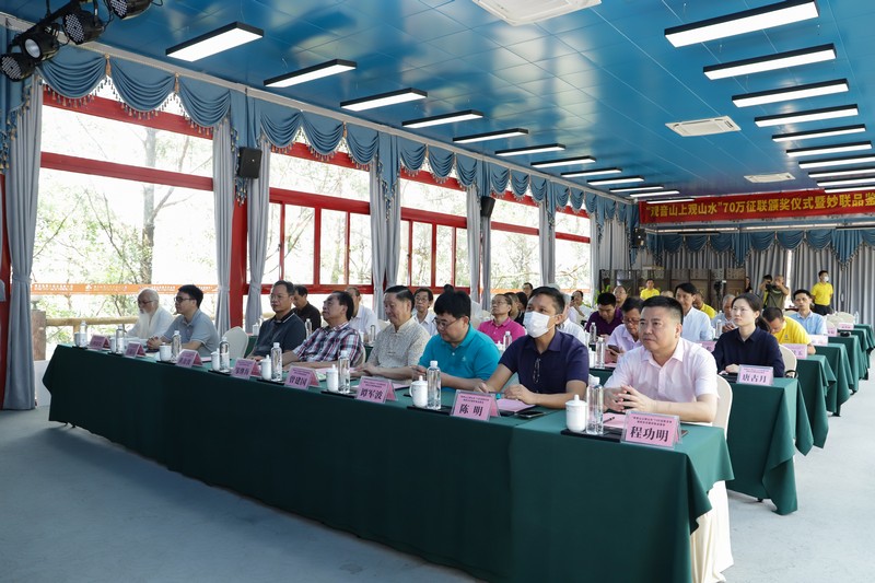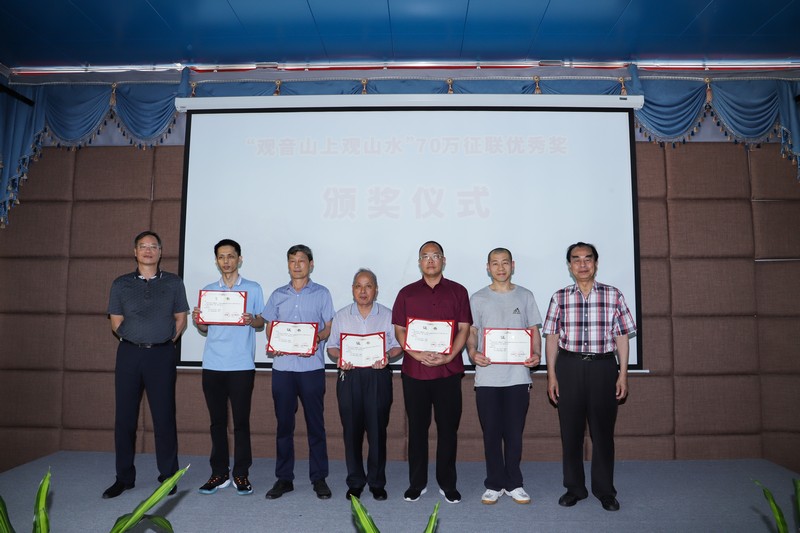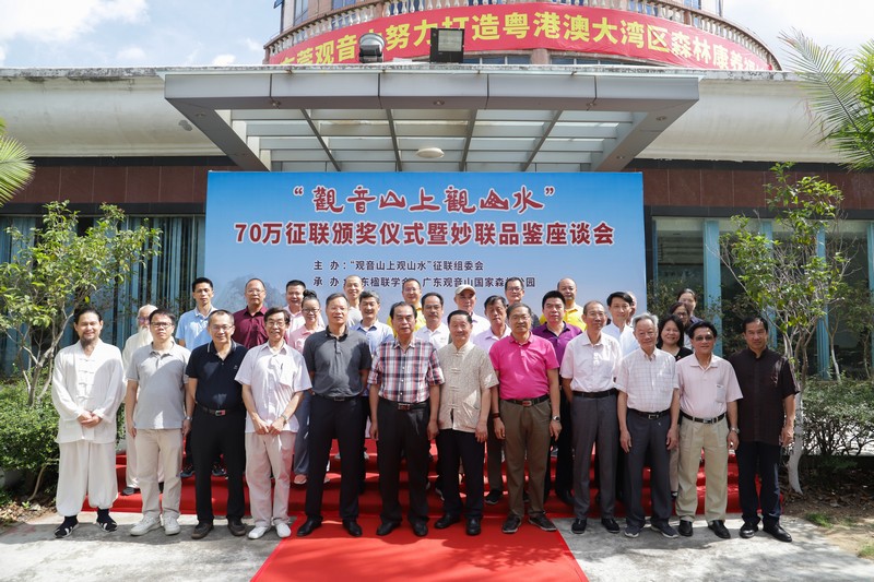 見圳客戶端·深圳新聞網(wǎng)2021年5月18日訊(記者 常軍平)“觀音山上觀山水”70萬(wàn)征聯(lián)活動(dòng)終有結(jié)果,評(píng)選出15句優(yōu)秀下聯(lián),最佳下聯(lián)空缺,并于5月17日在東莞觀音山舉行了頒獎(jiǎng)儀式及妙聯(lián)品鑒座談會(huì)?;顒?dòng)現(xiàn)場(chǎng),楹聯(lián)家們雅聚一堂,共同見證了本次征聯(lián)活動(dòng)優(yōu)秀獎(jiǎng)的頒出。以楹聯(lián)為媒,進(jìn)行交流互動(dòng)。活動(dòng)期間,組委會(huì)代表東莞觀音山將結(jié)余款項(xiàng)67萬(wàn)元悉數(shù)捐給東莞樟木頭鎮(zhèn)慈善會(huì)。鑒于觀音山在推動(dòng)楹聯(lián)文化的傳承發(fā)展做出的突出貢獻(xiàn),被中國(guó)楹聯(lián)學(xué)會(huì)授予“中國(guó)楹聯(lián)文化名山”稱號(hào)。