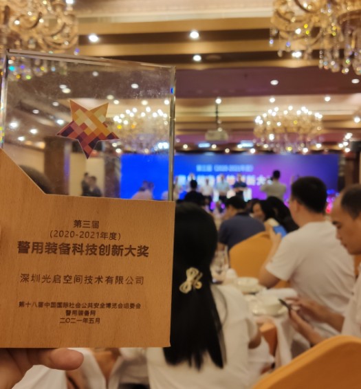在此次活動上,歷時半年的“第三屆 (2020-2021年度 )警用裝備科技創(chuàng)新大獎”評選結果名單也正式揭曉,光啟憑借警用智能頭盔產品的卓越性能,榮獲第三屆警用裝備科技創(chuàng)新大獎。