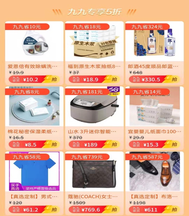2020年11月,九九會員正式推出,主打“超值會員價(jià)”權(quán)益,突出“首單回本、再買即賺”會員心智,提供全品類近萬款會員價(jià)商品和周到的服務(wù)。自上線以來“九九會員”不斷推出新功能、新玩法,豐富會員權(quán)益。截至2021年5月,九九會員月卡會員已突破300萬人,年卡會員近50萬人。