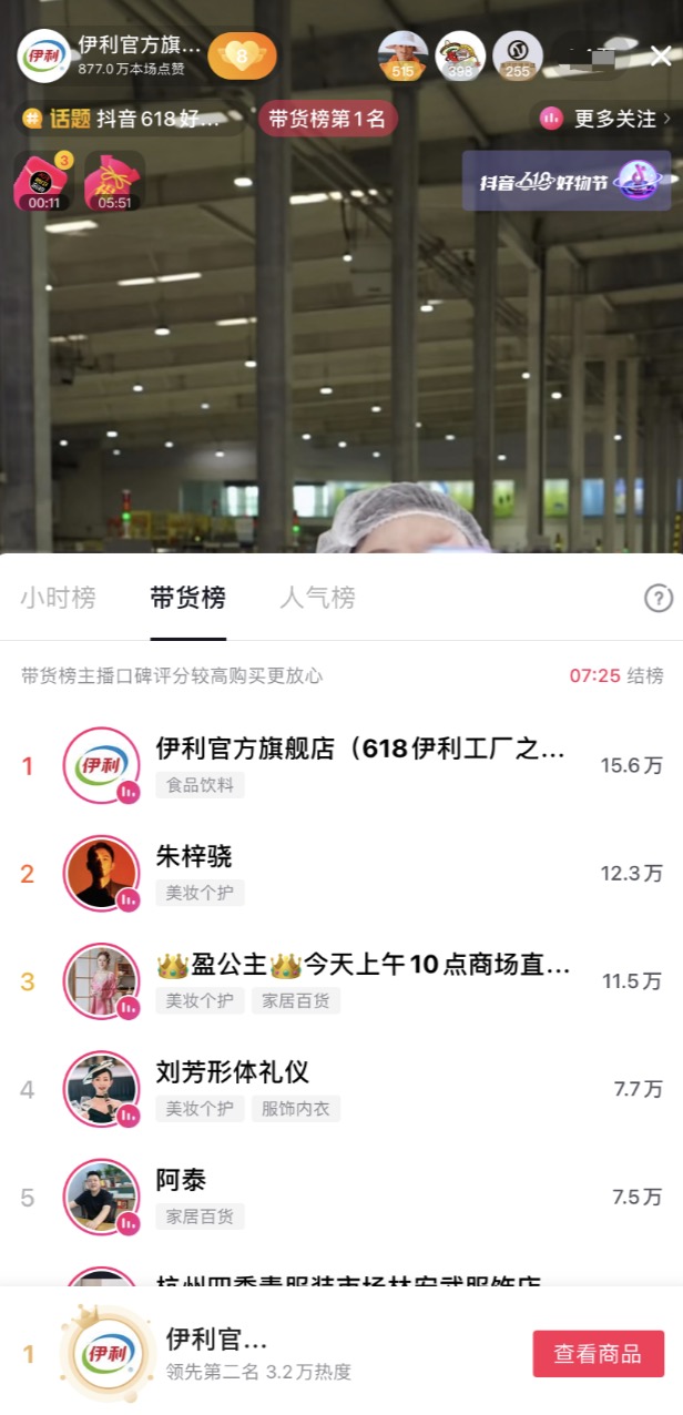 同時,伊利洞察到消費(fèi)者對產(chǎn)品品質(zhì)的關(guān)注,和直播間消費(fèi)者一起深入伊利工廠,直接在好奶的源頭開啟溯源直播,極大地滿足了消費(fèi)者所見即所得的需求,同時也提升了直播的可看性,充分契合了興趣電商的內(nèi)核。這種新穎的直播模式最終創(chuàng)造了連續(xù)霸屏帶貨小時榜5小時的自播紀(jì)錄,在618當(dāng)天實(shí)現(xiàn)了抖音行業(yè)單日自播榜第一,單日銷售額破千萬的傲人成績。