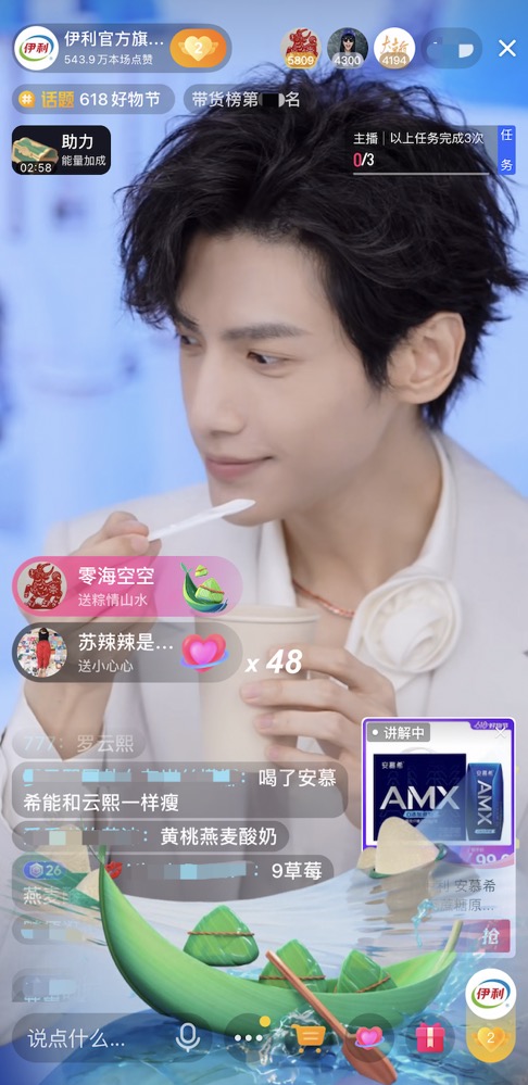 在新營銷上,伊利旗下安慕希品牌憑借強(qiáng)大的品牌力,在618期間聯(lián)合平臺打造首個乳品品牌狂歡日。邀請品牌形象大使羅云熙空降伊利抖音直播間,與消費(fèi)者進(jìn)行互動直播,內(nèi)容寵粉的同時高效轉(zhuǎn)化銷售。憑借寵粉互動吸引抖音平臺年輕消費(fèi)者群體,狂歡日當(dāng)日直播間消費(fèi)者中,年輕人群比例高達(dá)70%。