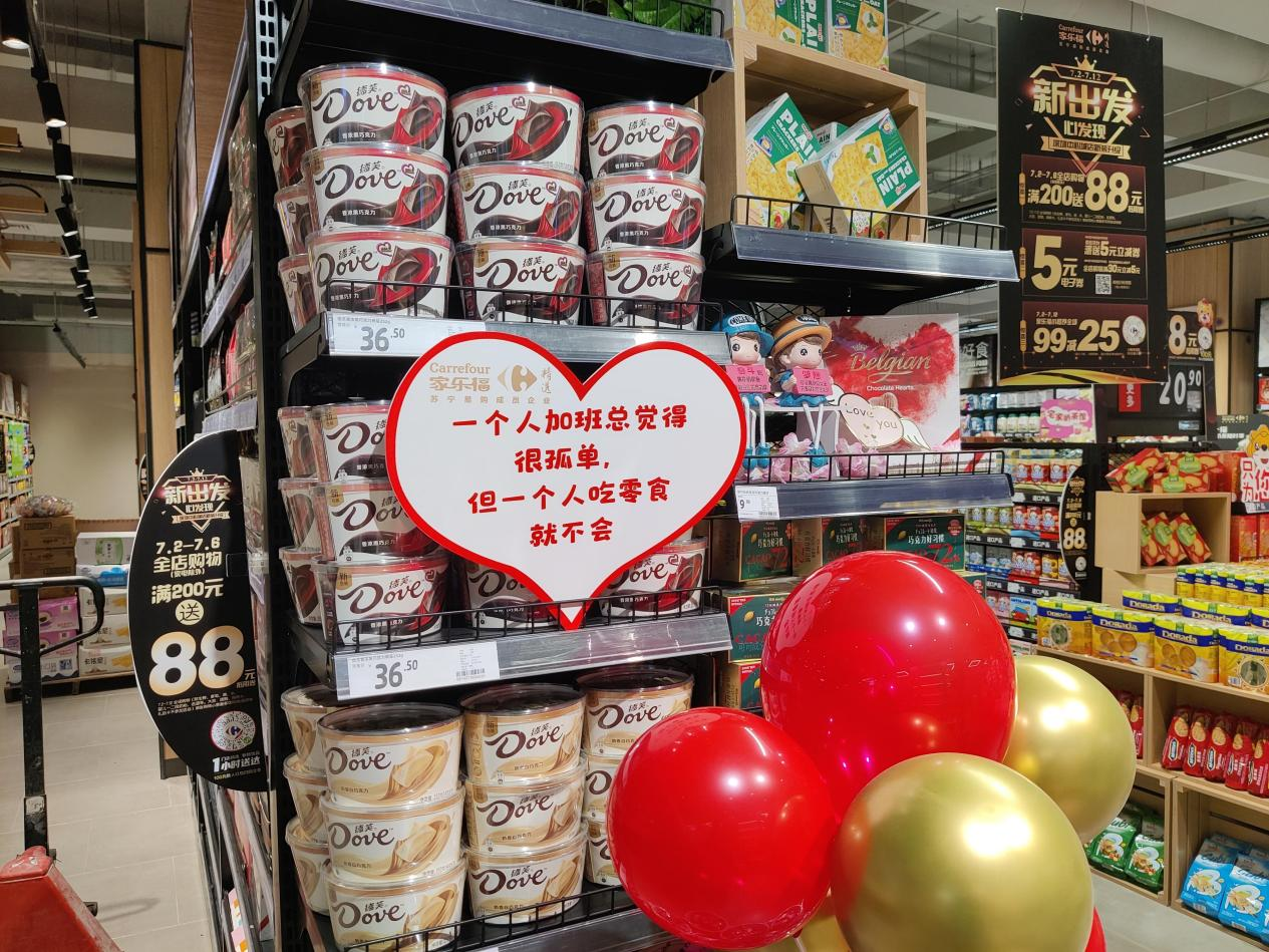 借著盛大開業(yè)的東風(fēng),家樂福社區(qū)品質(zhì)中心店推出了“優(yōu)品物語”的趣味逛店活動。該活動,在原本干巴巴的價格指示牌下面增加了諸如,“一個人吃飯很孤單,但一個人吃零食就不會”“隔壁的,你和卷心菜是什么關(guān)系?我是反內(nèi)卷菜系”“櫻桃:要我一口能讓你大紅”“藍(lán)莓:我還爆漿!能讓你大紫”等“Z世代”語言,吸引大家來發(fā)掘逛超市的趣味。不但年輕的小情侶可以在下班后默契地相視一笑,也吸引到小紅書的博主們競相探店打卡。既賦予了購物一點(diǎn)有趣和人性化,也給這屆年輕人動輒發(fā)圈、種草的社交型消費(fèi)加點(diǎn)料。
