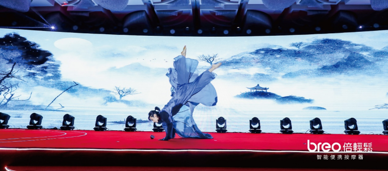 在晚會上,倍輕松邀請了風(fēng)暴舞者羅昱文表演中國古典舞《問月》?!拔ㄔ府?dāng)歌對酒時,月光長照金樽里。”這支舞蹈傳遞出中國東方美學(xué)和倍輕松的品牌哲學(xué)如出一轍的相似。舞者用古典神韻和舞姿將“與月相期邈云漢”的浪漫情懷表達(dá)的淋漓盡致。詩與酒,樂與舞,醉人心。