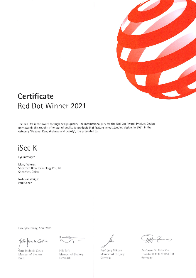2021年倍輕松眼部按摩器iSee K榮獲紅點(diǎn)設(shè)計獎