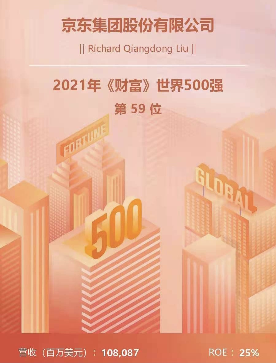 讀特客戶端·深圳新聞網(wǎng)2021年8月2日訊 (記者 田志強(qiáng))8月2日,《財富》公布了2021年世界500強(qiáng)榜單,作為同時具備實體企業(yè)基因和屬性、擁有數(shù)字技術(shù)和能力的新型實體企業(yè),京東集團(tuán)排名由2020年的102位提升至59位。