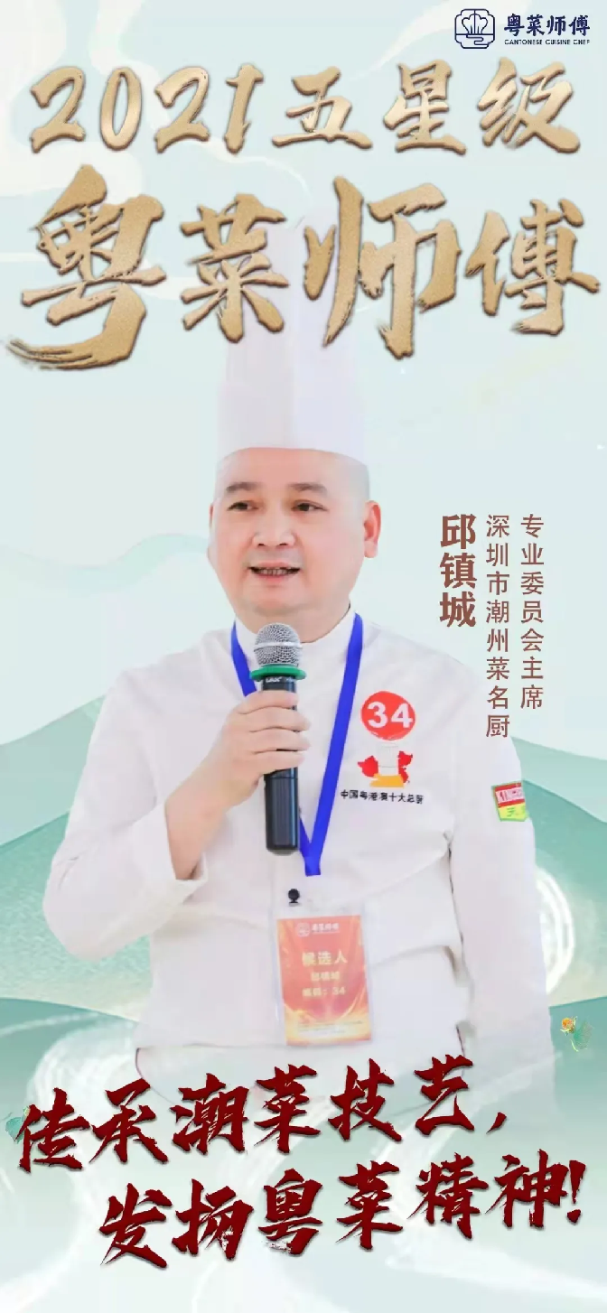 此次評選活動,來自深圳市潮州菜專業(yè)委員會的邱鎮(zhèn)城會長代表深圳餐飲界出戰(zhàn),最終獲得“五星級粵菜師傅名廚”榮譽稱號,是深圳潮州菜系唯一獲此殊榮的五星級名廚。邱鎮(zhèn)城學做潮汕菜30年,是深圳“精細潮州菜”的領(lǐng)軍人物,曾在米盧時代的國家足球隊擔任大廚,現(xiàn)任深圳市潮州菜名廚委員會主席,其烹飪技術(shù)屢獲好評,是中國粵港澳十大總廚,還是廣東十大南粵廚王、深圳市十佳行政總廚。邱鎮(zhèn)城在推廣、宣傳潮汕美食的同時,將潮汕文化推向首都、傳播全國,體現(xiàn)的是潮人愛拼敢贏、吃苦耐勞的精神。