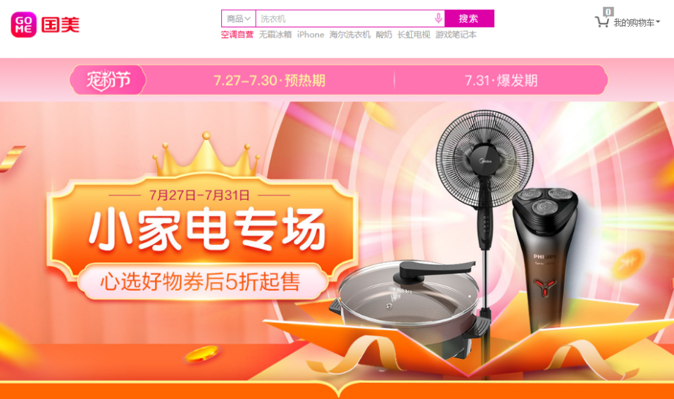7月27日-31日,深圳國美寵粉節(jié)小家電專場來襲,琳瑯滿目、有顏有料,智能生活原來離我們?nèi)绱酥?/p>