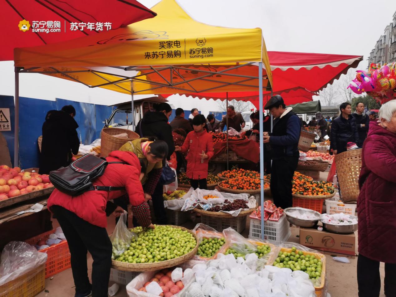 1月12日開始,蘇寧年貨集市活動陸續(xù)在邯鄲馬頭鎮(zhèn)、淮安十里營、湖北潛江等下沉市場落地。