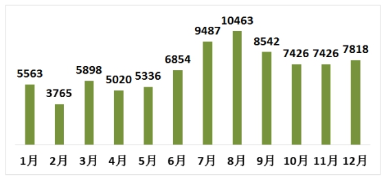 從各個(gè)月份的投訴情況看,下半年的投訴量大于上半年,投訴最多的月份主要集中在7、8、9三個(gè)月。如圖1所示。