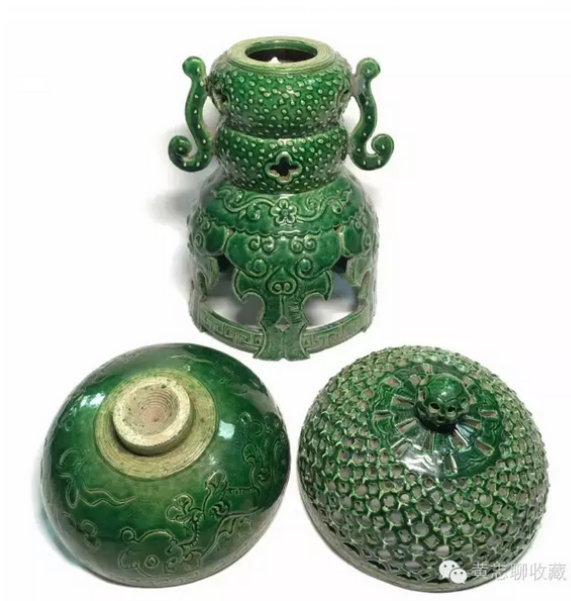 香薰在古代是頗為流行的室內(nèi)陳設(shè)用器,形制多樣,材質(zhì)不一。漢唐時(shí)期出土的香薰眾多,如有名的漢代博山爐,唐代香薰球等。兩宋時(shí)期,實(shí)行文人治國,香具更是盛行,影響所及,同時(shí)并存的遼、金兩朝也頗為風(fēng)行。當(dāng)然,香具中也區(qū)分宅舍用及寺廟用、宮殿用等。其中寺廟及宮殿用品多為成對(duì)擺放,講究對(duì)稱之美,顯得莊重大方。而宅舍之用更為推崇雅致,趣味。下面介紹的這件綠釉香薰應(yīng)為遼金時(shí)期的寺廟用品。 香薰高31.5cm、直徑14.5cm,整體呈豆式。豆是先秦禮器,用以在祭祀、宴饗中盛放肉食。在家廟祭祀中,豆是不可或缺的禮儀用具,早期豆用竹編成,后用青銅鑄造,因此在禮書中稱“籩豆”。此對(duì)香薰延續(xù)了青銅豆的大體形制,上作球形,香盤半圓,蓋為鏤空半圓,扣合后渾然如一。香盤可拆卸,安插于支座上。座上部為雙扁圓狀疊壓,兩側(cè)裝飾螭龍耳;下部呈鏤空裙擺式,承以托泥,穩(wěn)重大方。通體施綠釉,釉面潤澤,純凈自然。器身點(diǎn)綴穿花龍紋,如意紋,加之裙擺上的龕形開光,推測(cè)為當(dāng)時(shí)高等級(jí)的寺廟的佛前薰香供器。 欣賞更多藏品,歡迎瀏覽【黃志博物館】網(wǎng)站。 我們會(huì)介紹更多的收藏知識(shí)、推薦更多優(yōu)質(zhì)優(yōu)價(jià)的藏品供您了解和選擇,也歡迎您把這些分享給朋友們,讓大家一起來了解歷史文化、體會(huì)收藏的快樂!