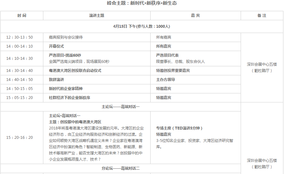 2018總裁創(chuàng)新峰會(huì)以“新時(shí)代、新秩序、新生態(tài)”為主題,秉承“全球智慧、共享發(fā)展”理念,以全球化視野的戰(zhàn)略性眼光,順勢(shì)大眾創(chuàng)業(yè)、萬(wàn)眾創(chuàng)新和粵港澳大灣區(qū)的戰(zhàn)略機(jī)遇,積極推動(dòng)建設(shè)新時(shí)代企業(yè)命運(yùn)共同體,通過(guò)“主旨演講+高端對(duì)話+資本對(duì)接會(huì)”,圍繞科技、產(chǎn)業(yè)、金融,關(guān)注創(chuàng)新創(chuàng)業(yè)與創(chuàng)投,邀請(qǐng)政界領(lǐng)袖、中外知名企業(yè)總裁,500強(qiáng)企業(yè)商學(xué)院院長(zhǎng)、知名投資家、智庫(kù)專家、商會(huì)協(xié)會(huì)代表、財(cái)經(jīng)媒體等,共同探討新經(jīng)濟(jì)背景下中國(guó)企業(yè)可持續(xù)發(fā)展的機(jī)遇與挑戰(zhàn)。