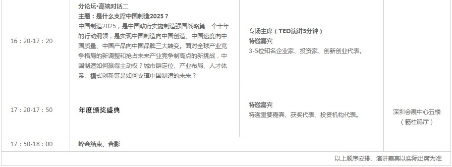 峰會(huì)議程