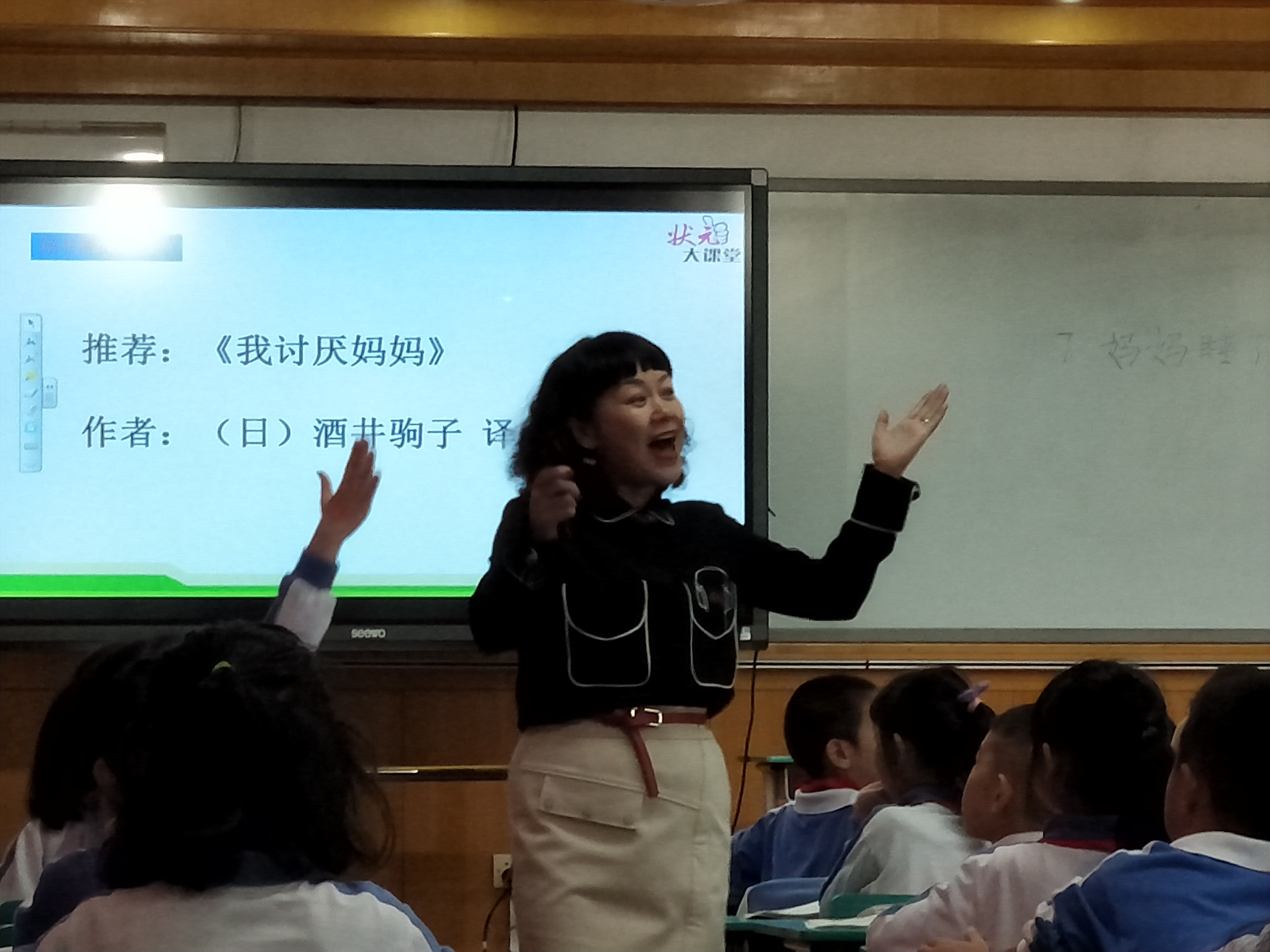 2015年,她還帶領(lǐng)孩子們?cè)谌猩傧汝?duì)建隊(duì)65周年大型慶典活動(dòng)上,展示了一節(jié)主題為“五星紅旗迎風(fēng)飄揚(yáng)”的隊(duì)會(huì)課,獲得與會(huì)的市、區(qū)領(lǐng)導(dǎo)和老師們的高度贊譽(yù)。市團(tuán)少工委大隊(duì)輔導(dǎo)員石老師看了他上的班會(huì)課,說“周老師,您帶的學(xué)生太出色了,各個(gè)都是出色的主持人,這節(jié)隊(duì)會(huì)課值得全深圳的中隊(duì)輔導(dǎo)員觀摩!”。今年廣東省教育廳教育研究員姚軼潔副主任聽了她一節(jié)隊(duì)會(huì)課,握著她的手激動(dòng)地說:“上得太好了,已經(jīng)超出了我們編寫教材的預(yù)期!”