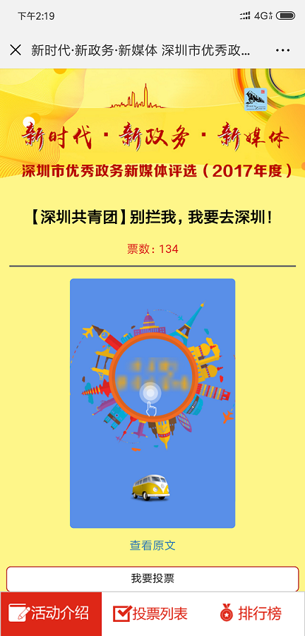 作為中國"最互聯(lián)網(wǎng)城市〃,深圳近年來大力建 設政務新媒體平臺矩陣,不斷建立健全工作機制,搭 建起為市民服務的新渠道、新平臺,涌現(xiàn)出許多優(yōu)秀 的政務新媒體。廣大市民網(wǎng)友,有哪些政務微信么, 讓你"欲罷不能〃,有哪位小編讓你〃刻骨銘心〃, 有哪些作品讓你"秒轉秒贊"?請為他們投上寶貴一 票吧!本次投票活動作為"新時代新政務備體"—— 深圳市優(yōu)秀政務新媒體評選(2017年度)活動的重要 組成部分,其結果將作為專家評審類獎項評選的重要 參考細,權重占比50%。