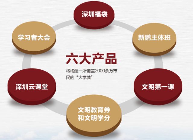 我們以構建一個覆蓋2000余萬市民的終身學習平臺、將深圳市打造成一個培養(yǎng)現(xiàn)代文明市民的“大學城”為愿景,推出新版深圳福袋、新鵬主體班、文明第一課、深圳云課堂、學習者大會等產品。