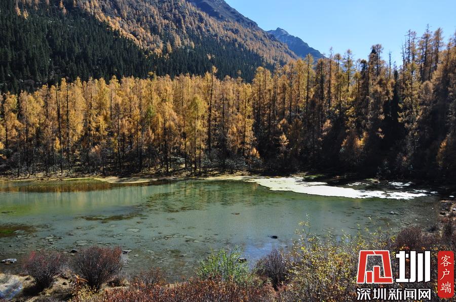 溝里有大片的落葉松、杜鵑和云杉林,雪山、海子、濕地、河流等景觀應(yīng)有盡有,唯獨(dú)沒有公路,只能沿木棧道徒步游覽。李仁奇攝