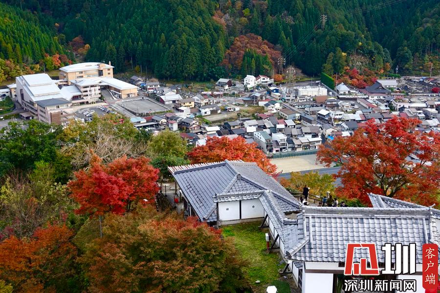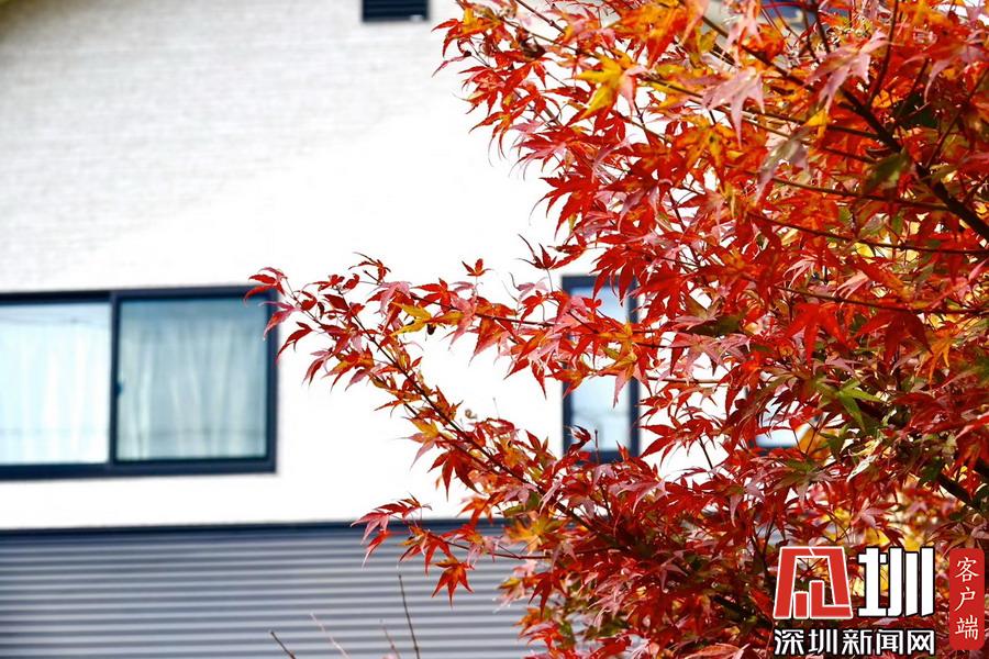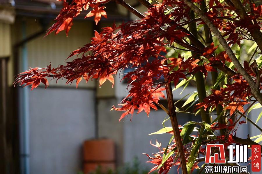 在明媚的陽光下,日本風(fēng)格民居掩映在紅葉之中,房前屋后的小景也很漂亮。李仁奇攝