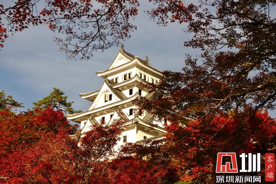 登上海拔354米的八幡山,木造古建筑天守閣下被染紅的楓樹和小城街市盡收眼底。李仁奇攝