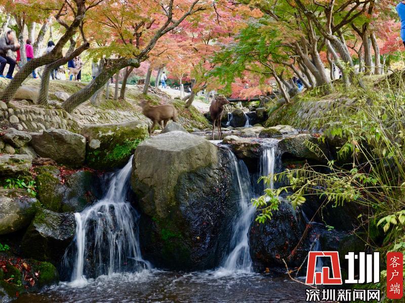 游覽神鹿公園喂飼馴鹿,是奈良觀光的象征性選擇。這里一年四季都游人如織,秋日紅葉映襯下的景觀更是情趣盎然。李仁奇攝
