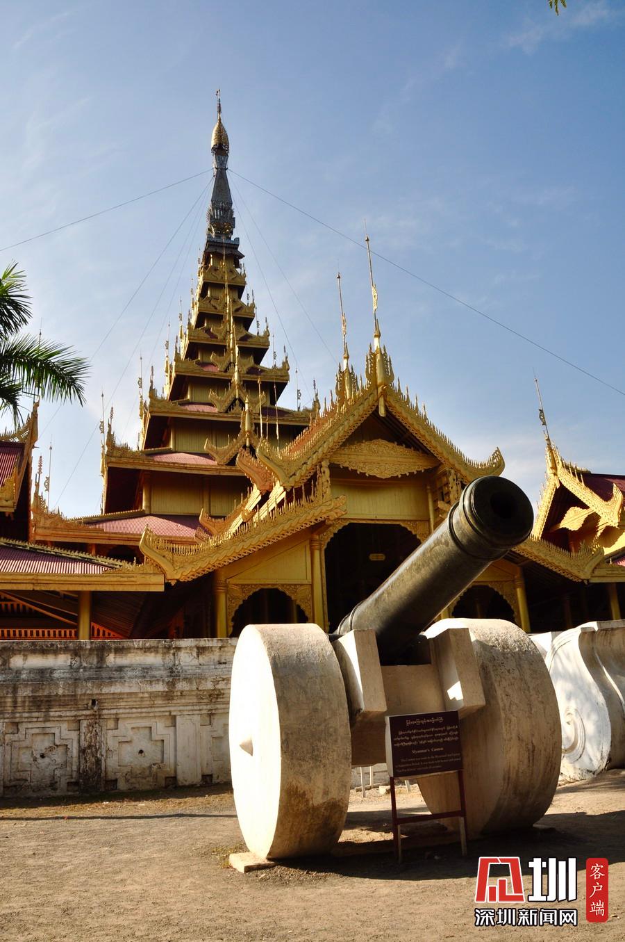 皇宮呈正方形,邊長(zhǎng)3.2公里,有四道主門,八道邊門。紅磚宮墻,墻外有寬闊的護(hù)城河。宮內(nèi)有104座大小殿宇,建筑群均用柚木建造而成,精雕細(xì)刻,宏偉壯麗。第二次世界大戰(zhàn)毀于戰(zhàn)火,只剩下宮墻和塔樓。李仁奇攝