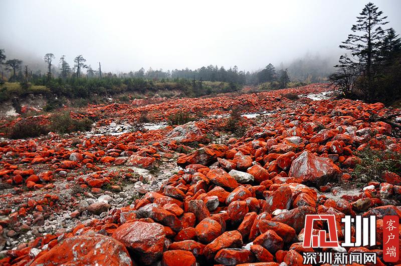 紅石對(duì)生長(zhǎng)環(huán)境的要求極為苛刻,空氣潔凈度、濕度、水的清潔度都會(huì)影響它們的生長(zhǎng)。雅家梗一代低碳富氧的空氣、冰山融雪的溪流、森林茂密的植被,為紅石的生長(zhǎng)繁衍提供了最理想的環(huán)境。在這里,紅石密布于近百米寬的河谷里,不同的季節(jié),不同的天氣狀況下,幻化出不同的色彩,呈現(xiàn)朝紅夕褚的奇異景觀(guān)。