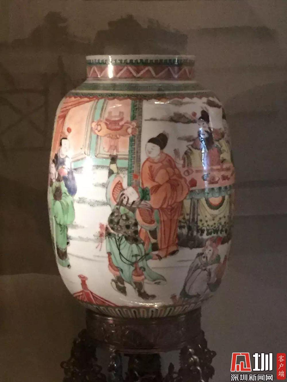 另一款水滸故事粉彩盤(pán)上,三個(gè)人物都有姓名,分別是:楊雄、解珍、阮小七。