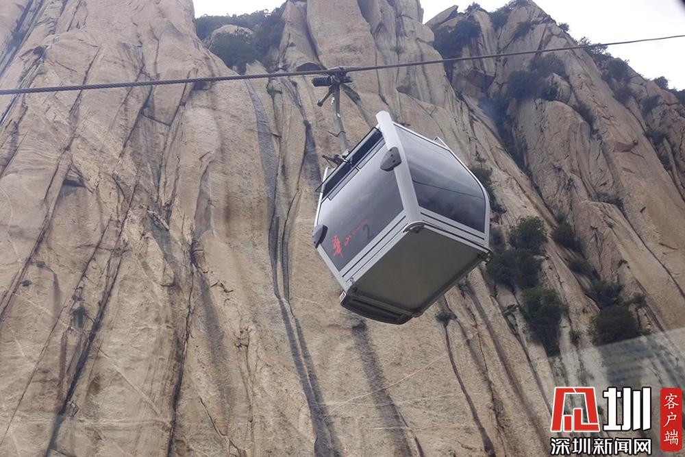 線路斜長4211米,相對高差894米,單向運(yùn)量1500人/小時(shí)。華山索道一覽。李仁奇攝。