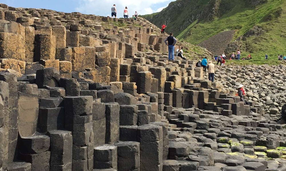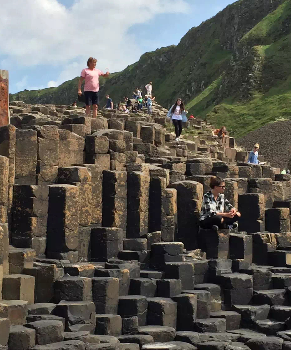 約五千萬年前,在今天蘇格蘭西部內(nèi)赫布里底群島一線至北愛爾蘭東部火山非?;钴S,一股股玄武巖巖熔流從裂隙的地殼中涌出,隨著灼熱的熔巖冷卻收縮,結(jié)晶的時(shí)候,開始爆裂呈規(guī)則的六邊形形態(tài)。李仁奇 攝